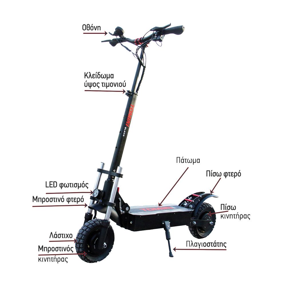 Πλαστικοί λασπωτήρες Φρένα: Μπρος / πίσω υδραυλικά δισκόφρενα + EBS Μπροστινή και πίσω ανάρτηση Μπρος / Πίσω φώτα, κουδούνι στο τιμόνι,