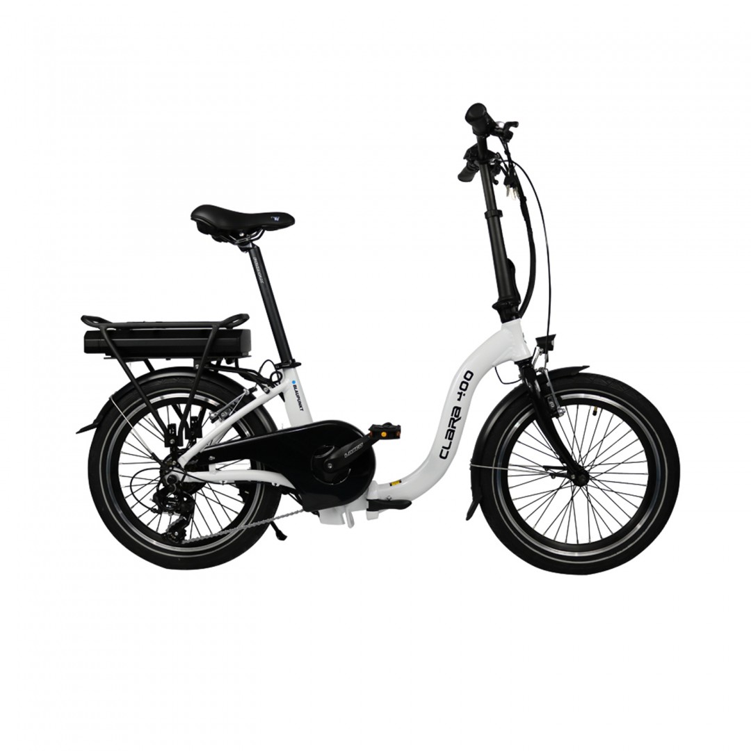 Πτυσσόμενο eBike Clara 400 από τη Blaupunkt, εξοπλισμένο με αφαιρούμενη μπαταρία και πρακτικό ράφι αποσκευών. Έχει βάρος περίπου 17,5 kg (συμπεριλαμβανομένης της μπαταρίας) και ταχύτητα έως και 60 χλμ/ω.