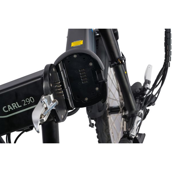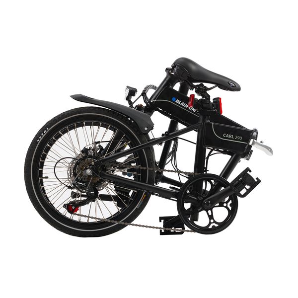 Εξοπλισμένο με έναν έξυπνο μηχανισμό σύσφιξης, το Blaupunkt Carl 290 μπορεί να διπλωθεί πολύ εύκολα και έτσι να μειωθεί στο μέγεθος κατά το ήμισυ. Σε μόλις 4 βήματα, το πτυσσόμενο ηλεκτρονικό ποδήλατο γίνεται ένα εύχρηστο “πακέτο”. Το χαμηλό βάρος περ. 19 κιλά διασφαλίζουν επίσης ότι μπορεί να μεταφερθεί εύκολα και άνετα στο λεωφορείο και το τρένο.